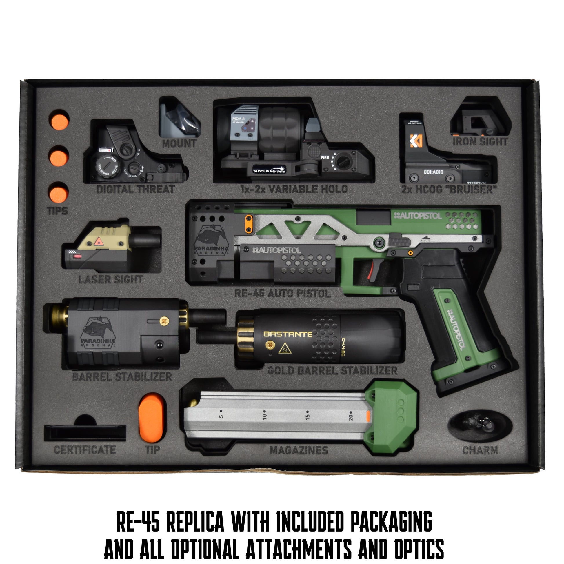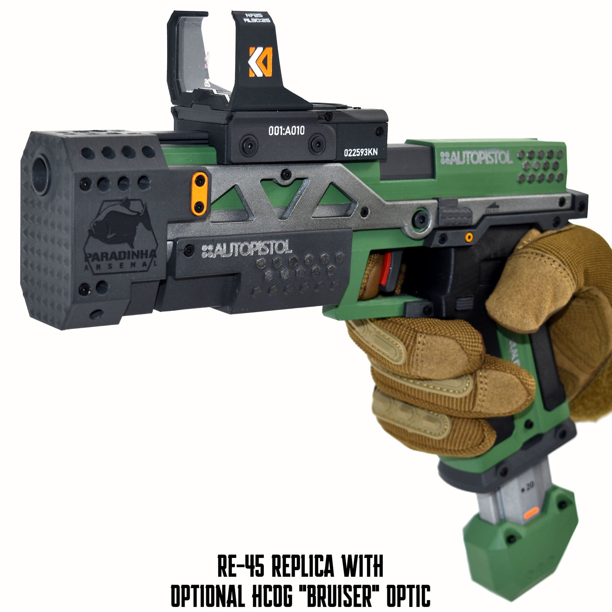 Please see this video about the RE-45 Prop for additional information on my RE-45 auto pistols, optics, attachments and accessories.